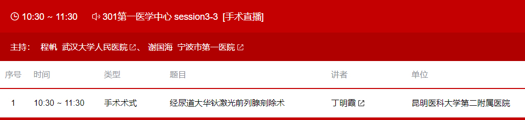 手術演示主持:程 帆(武漢大學人民醫院)謝國海(寧波市第一醫院)
