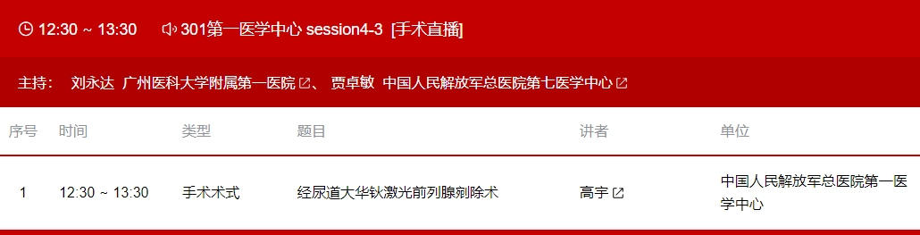手術演示主持:劉永達(廣州醫科大學附屬第一醫院)、賈卓敏(中國人民解放軍總醫院)